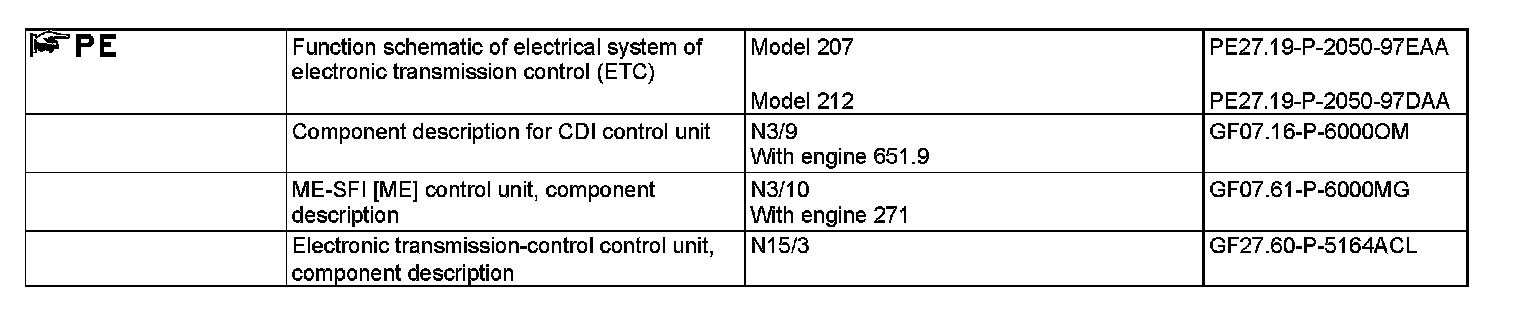 The kick down function is activated as of a pedal travel greater than 90 %. The "kick down" signal is led from the CDI control unit (N3/9) (with diesel engine) or ME-SFI control unit (N3/10) (with gasoline engine) to the electronic transmission control control unit via the drive train CAN. Based on this information the electronic transmission control control unit actuates the control solenoid valves so that the upshifts and downshifts take place at higher engine speeds in order to achieve maximum performance.