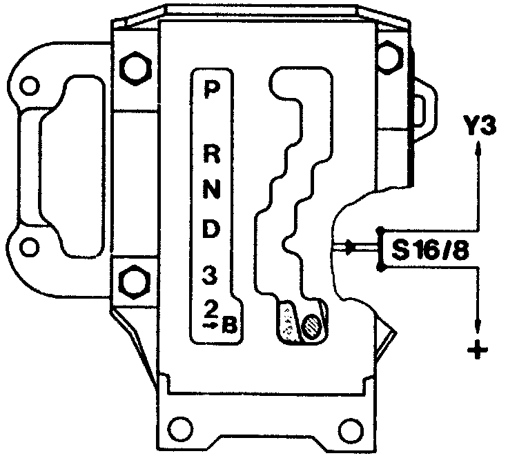 When Selector lever is engaged in position "B" current is supplied to the automatic transmission kickdown valve (Y3) by the B shift switch (S16/8) in the selector lever gate. The automatic transmission kickdown valve (Y3) Opens.