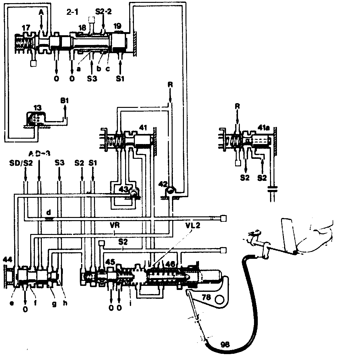 In an earlier version (Production 1983/84) the valve (41a) was installed in place of the plug (41). With the exception of minor variations, this system operated in a comparable manner.