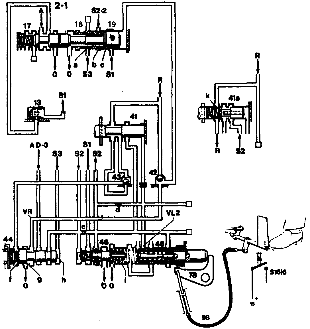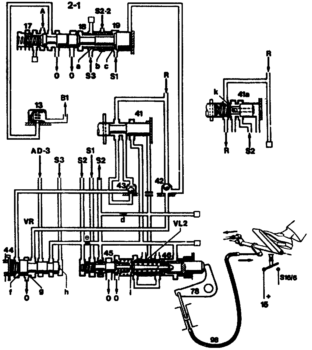 With kickdown the control pressure "S3" rises further. A 2-1 downshift is thus possible within the shift limit.