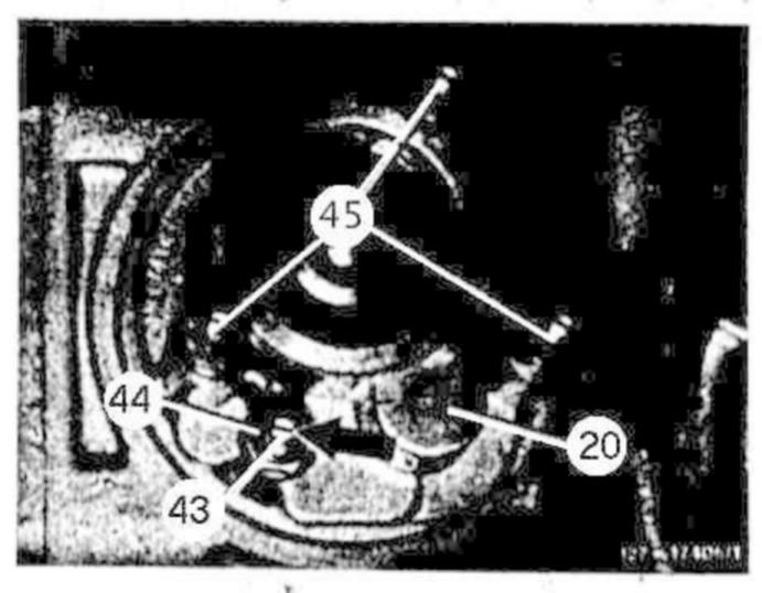 Tighten hex. socket screws (45) and nut for axial holder (44) to 8 Nm. The slot (arrow) in axial holder (43) must be horizontal.Install intermediate plate (21) and O-ring (22).