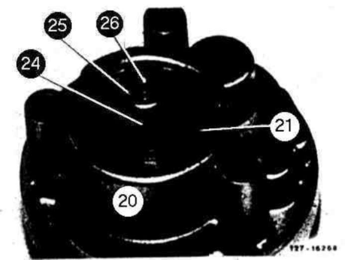 3 Remove shutoff piston (21) together with compression spring (24), spring plate (25) and ball (26) from pump housing (20).