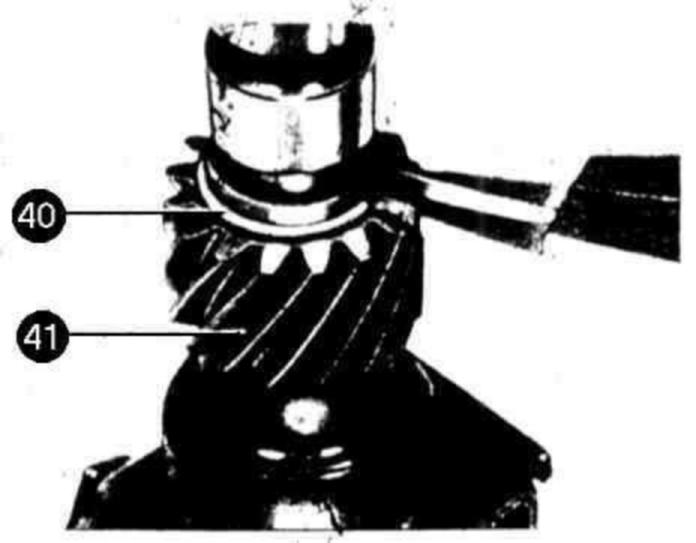8 Remove lock (40) and pull off helical gear (41).