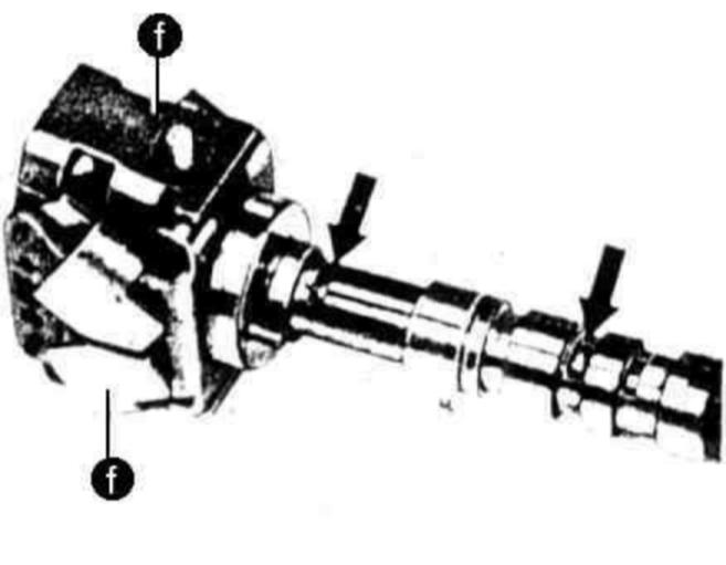 9 Move fly weights (f), while checking control valve in openings (arrows) for easy operation.