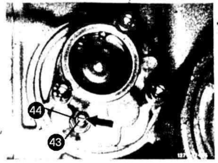 14 Move centrifugal governor axially slightly back and forth while turning axial holder (43) clockwise for correct engagement (position "A" in sectional view).
