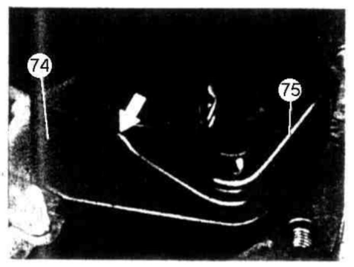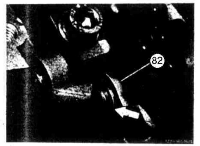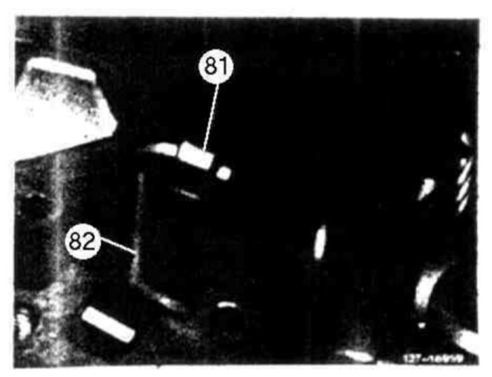 113 Place resilient linkage (82) on detent plate and insert lock (arrow).
