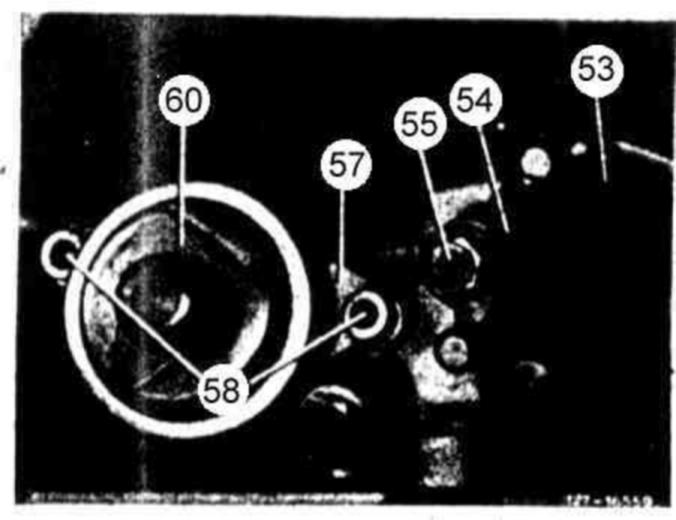 129 Insert modulating pressure control valve (59) and thrust pin (59a).