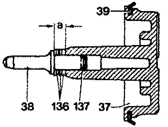 NOTE: To compensate release clearance on brake band B1 on transmissions up to end no. 788 605, brake band pistons with five thrust pin lengths are available. They are identified with grooves (arrow). The brake band piston with the shortest thrust pin has no identifying groove. The brake band piston with the longest thrust pin has four identifying grooves.