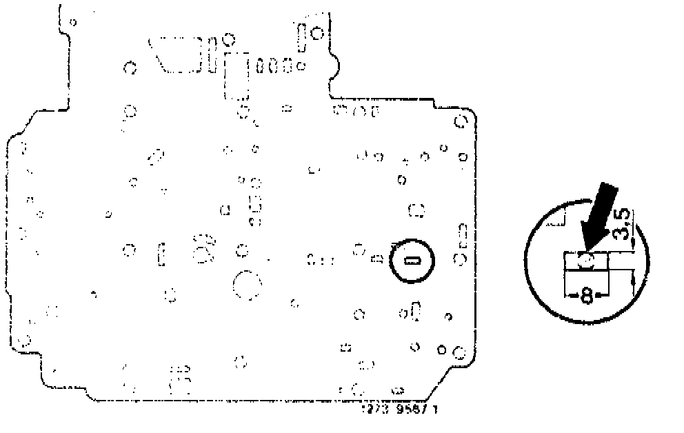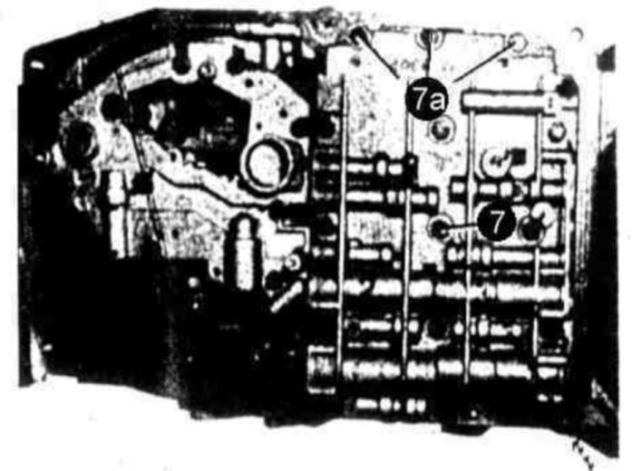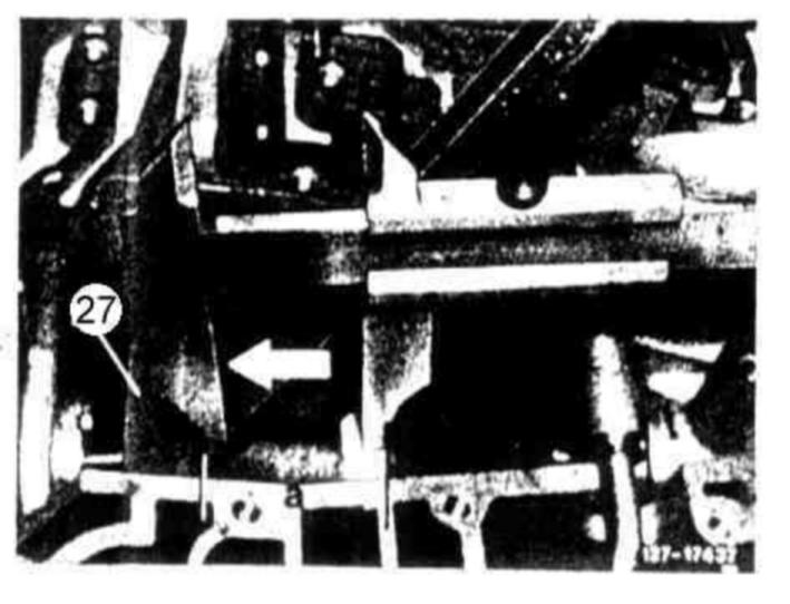 The temperature throttle (117) is installed as standard starting May 1980. On transmissions made at an earlier date the temperature throttle must be subsequently installed. In connection therewith, the throttle bore on large intermediate plate must be filed square. A white or red temperature throttle will be installed depending on shift valve housing version (refer to Installation survey 27-001).