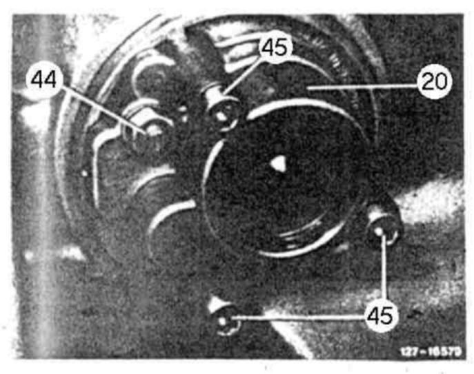 32 Unscrew nut (44) from axial holder for centrifugal governor.