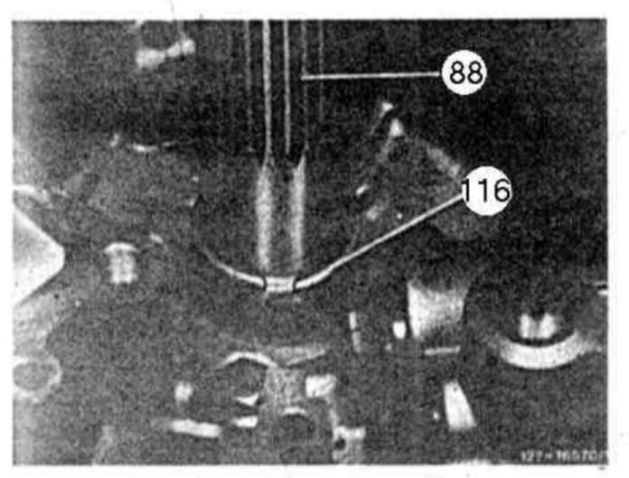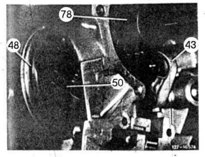 50 Unscrew hex. socket screw (75), pull out shaft (76) and remove detent plate (74).