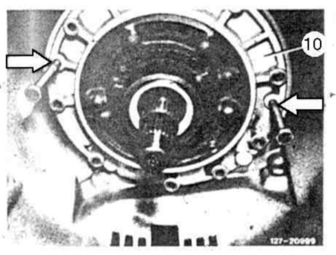 34 Remove 0-ring (22) and intermediate plate (21) of secondary pump.