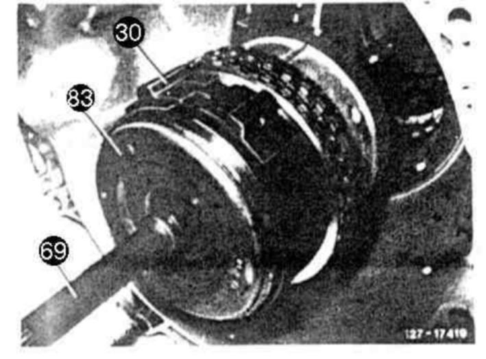 45 Pull clutch K 1 (83) together with brake band B 1 (30) from gear set.