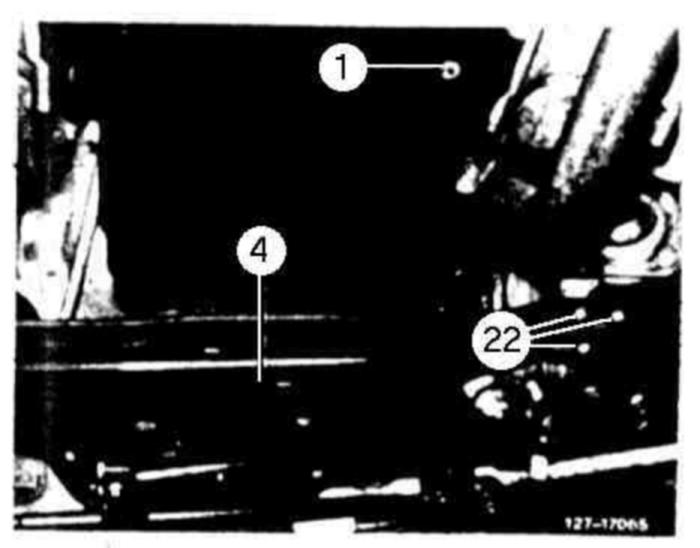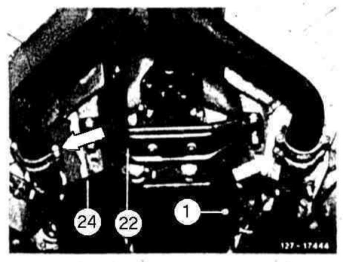 14 Remove cross beam (22) together with rear engine mount.