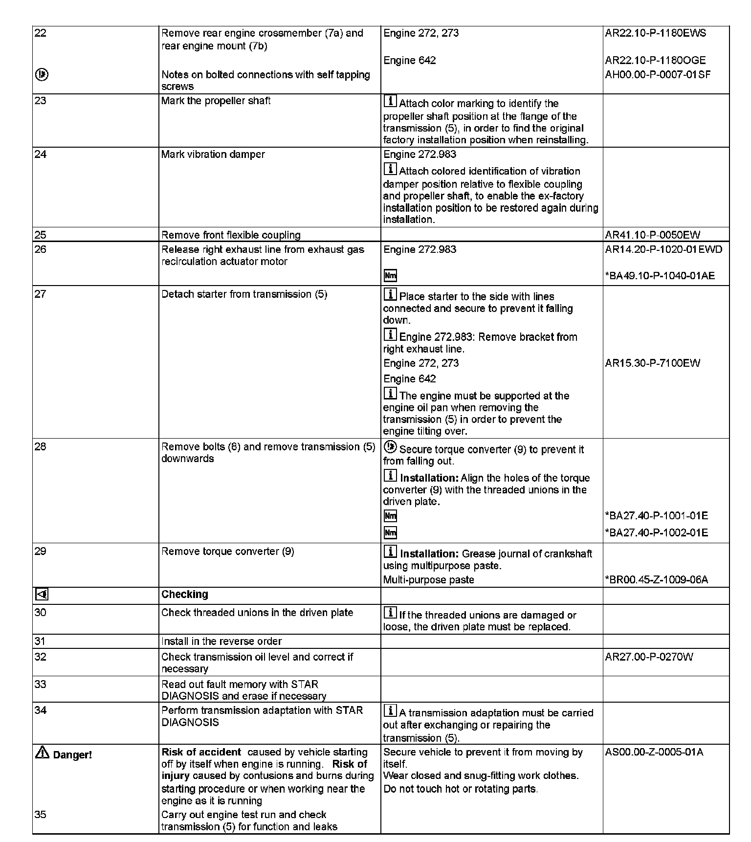 AR27.10-P-0500EV Remove/install transmission with torque converter