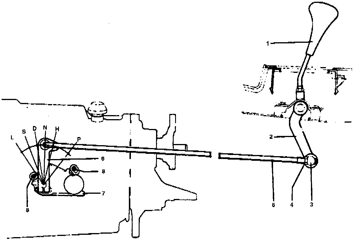 1 Disconnect control rod (5) from selector lever (2).