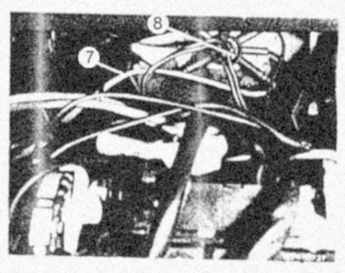 3 Pull light guide (7) for illuminating guide block (shift pattern) from distributor (8) or pull glow bulb out of housing and pull plug from switch on vehicles with selector lever position "B" as well as with "S" and "E" programs