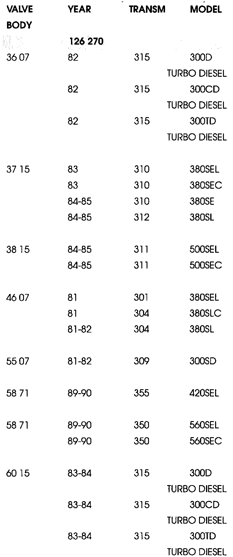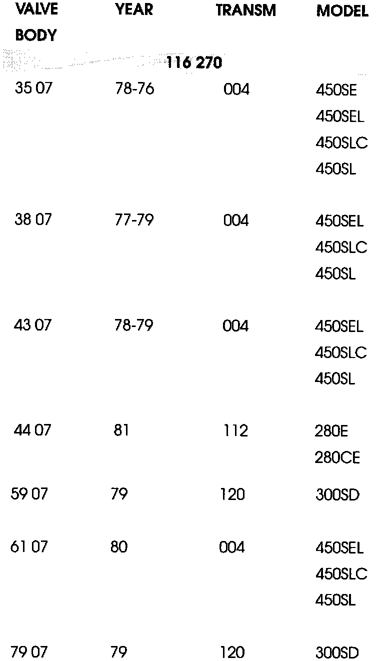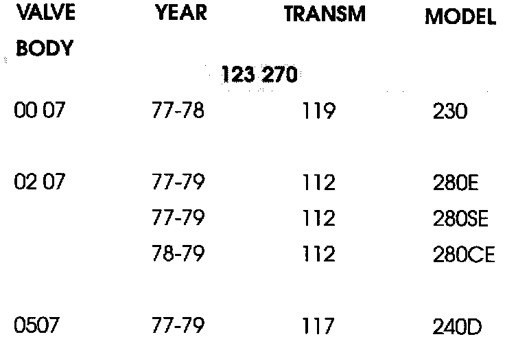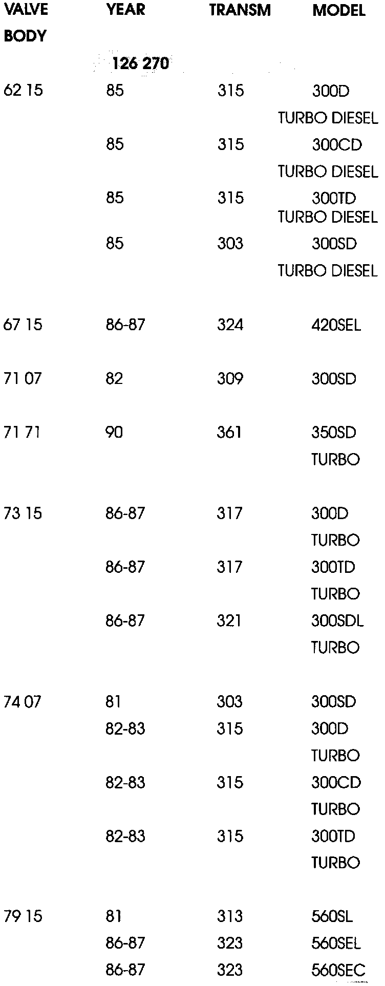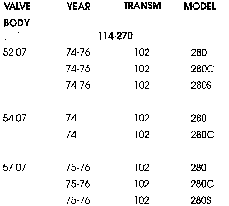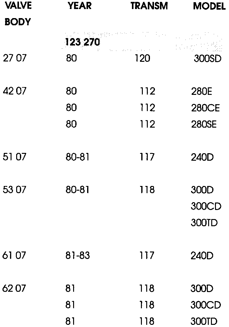 The chart list the valve bodies used from 1974-1990. This list does not cover "grey market" cars.