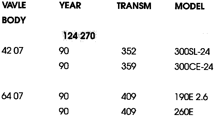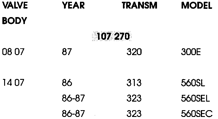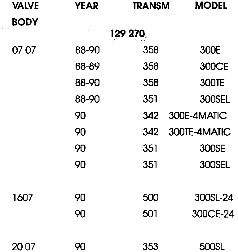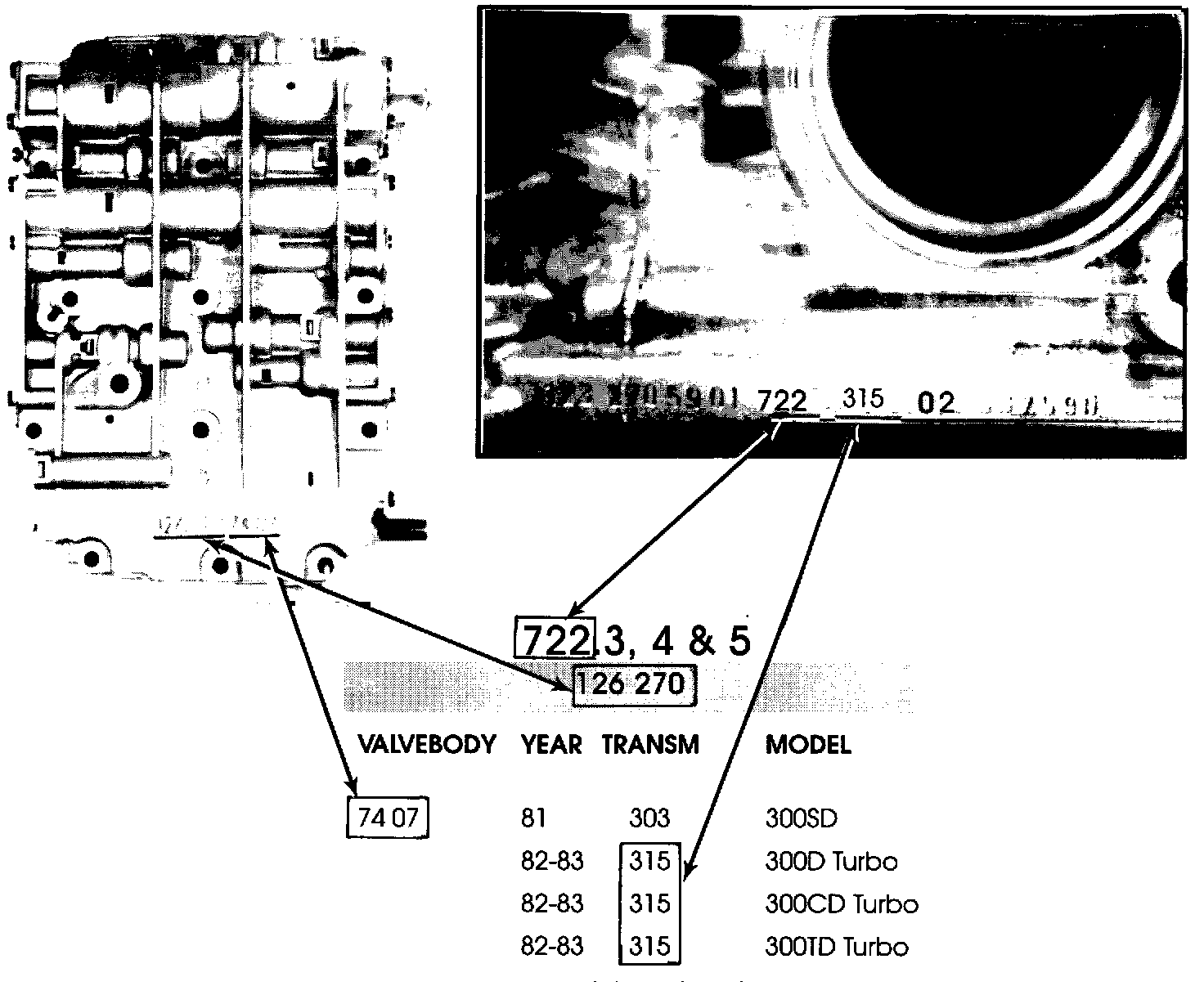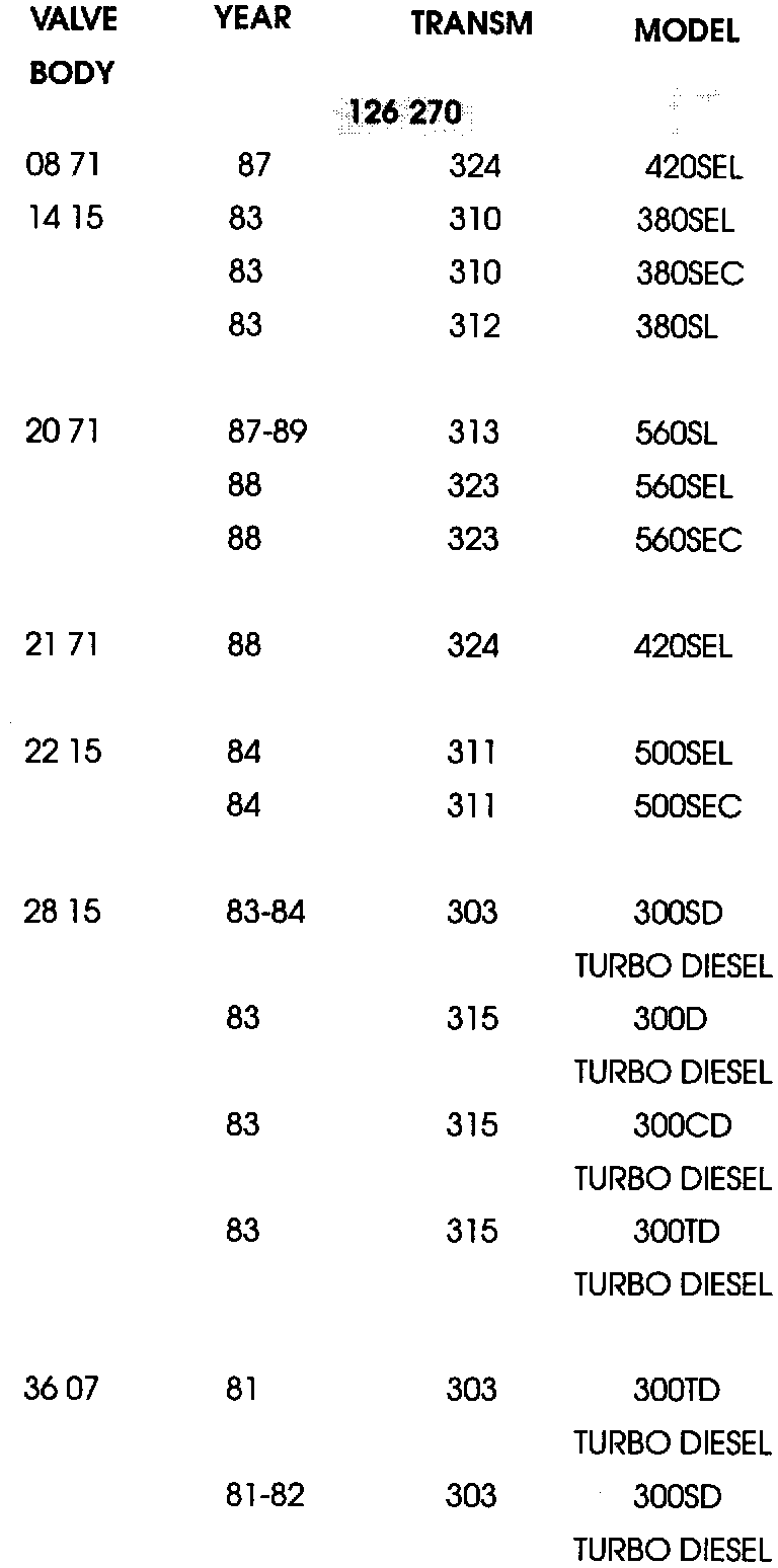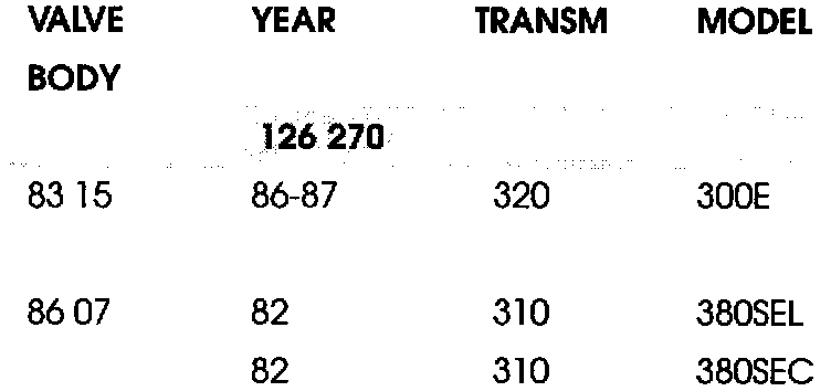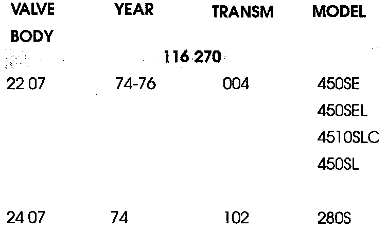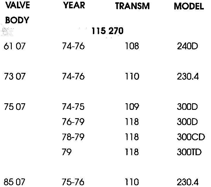 The chart list the valve bodies used from 1974-1990. This list does not cover "grey market" cars.