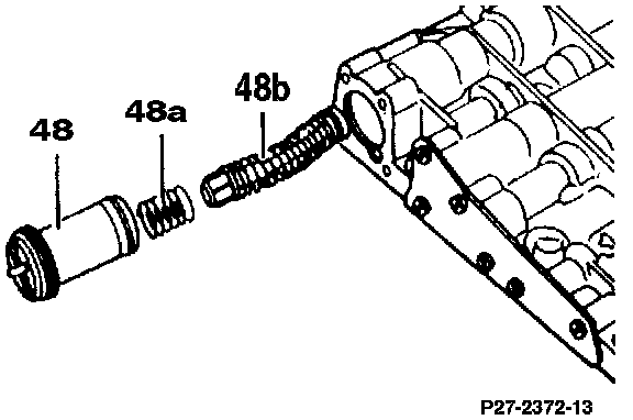 2. Unscrew end-plate of K1 accumulator (48) and remove accumulator piston with spring assembly (48, 48a, 48b).
