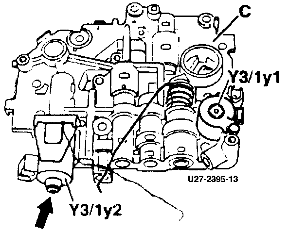 2. Inspect Control valve Y3/1y2, located in valve body lower cover (C, illustration):