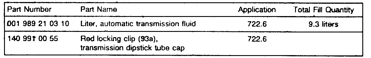 Electronically controlled five speed automatic transmission 722.6 is filled with a newly developed special transmission fluid and is considered to be "filled for life", ie: does not require fluid level checking or fluid change during scheduled maintenance procedures.