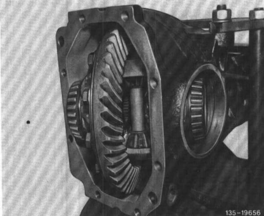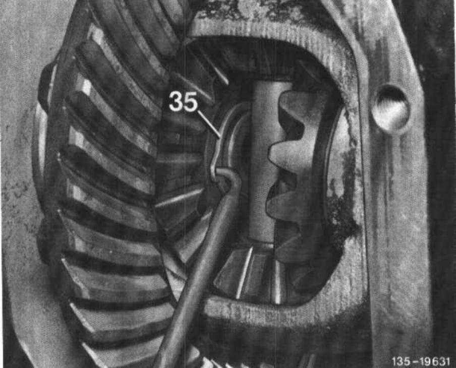 Adjusting backlashNote: The backlash of the gear assembly and the required preload of tapered roller bearings in relation to differential bearing is attained by means of the locking rings installed in rear axle housing. Locking rings of varying thickness are available. For assembly, it will be of advantage to reinstall the previously removed locking rings again at respective side to obtain a basic position.