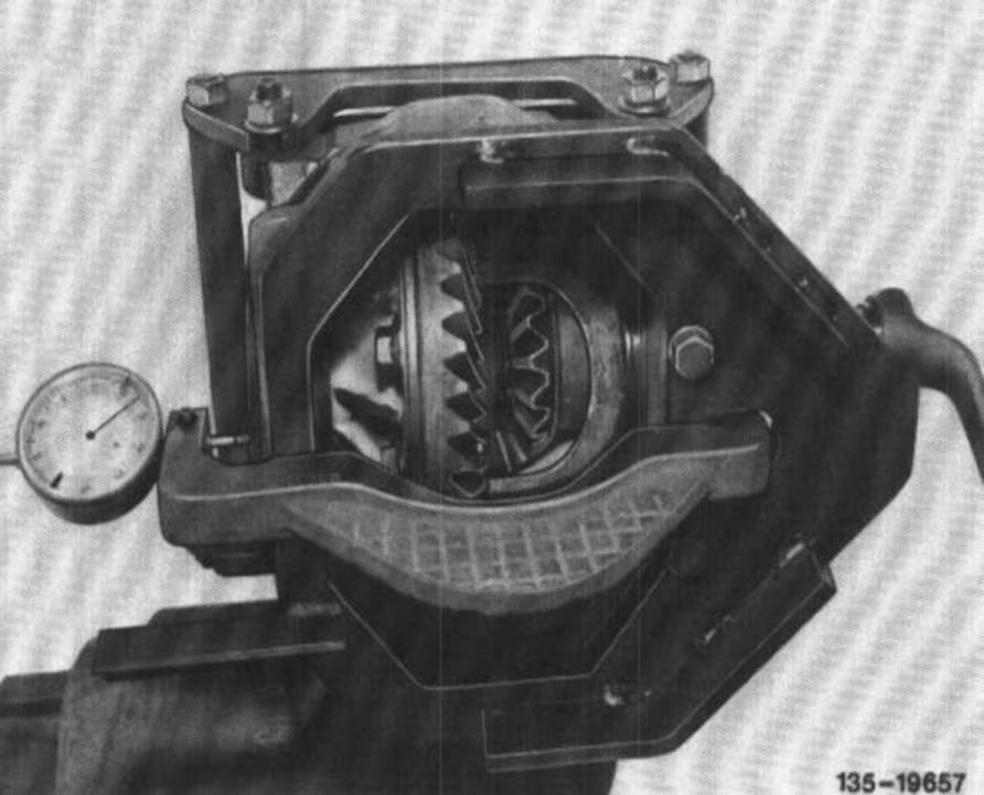 78 Insert backlash measuring device into lefthand bore of differential housing and clamp down.