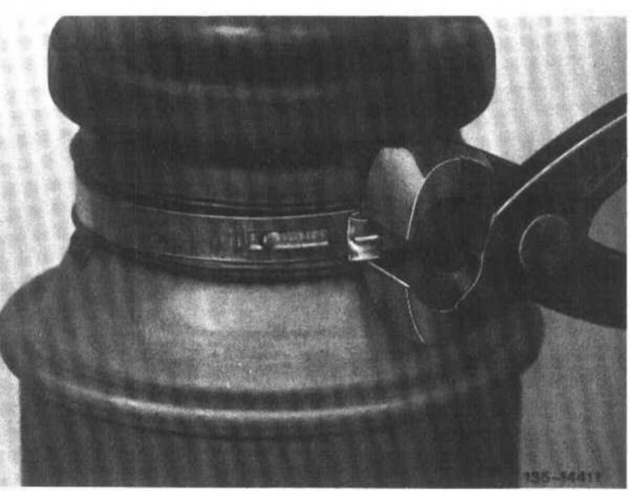 25 Attach rubber sleeve on stop sleeve and on rear axle shaft with new hose clips, while sliding sleeve up to bead machined on rear axle shaft.