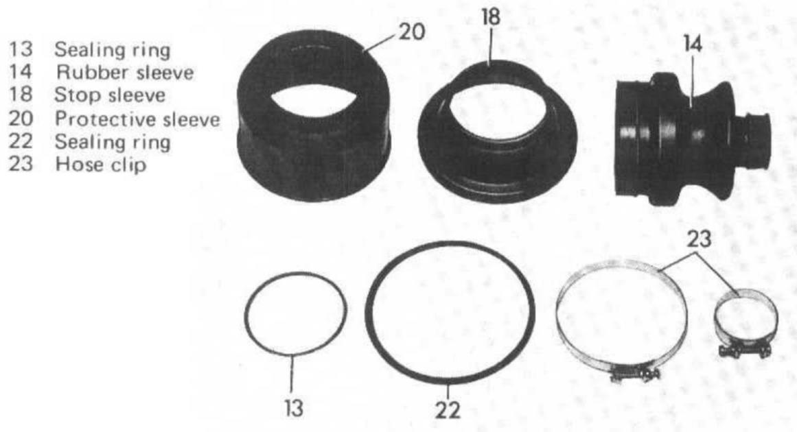 Note: For changing sleeves, a repair kit with all required parts is available. If the same rear axle shaft requires a second sleeve, use an additional repair kit comprising a rubber sleeve and two hose clips.