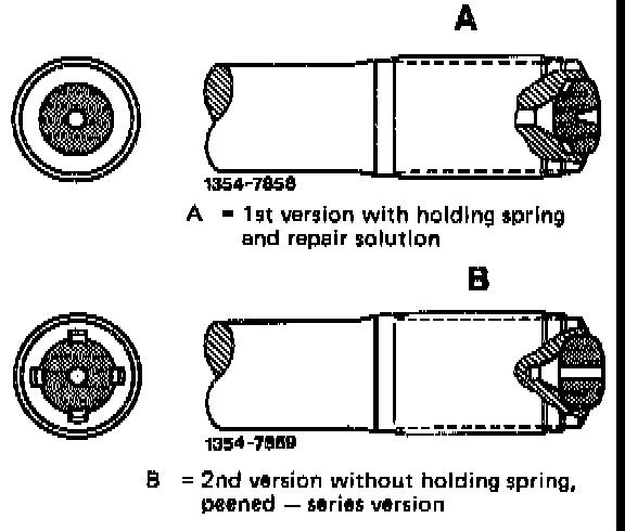 Note: Only stop buffers with holding spring (A) are available as spare parts. On rear axle shafts of 2nd version first remove dents caused by peening from inside by means of a grinder.