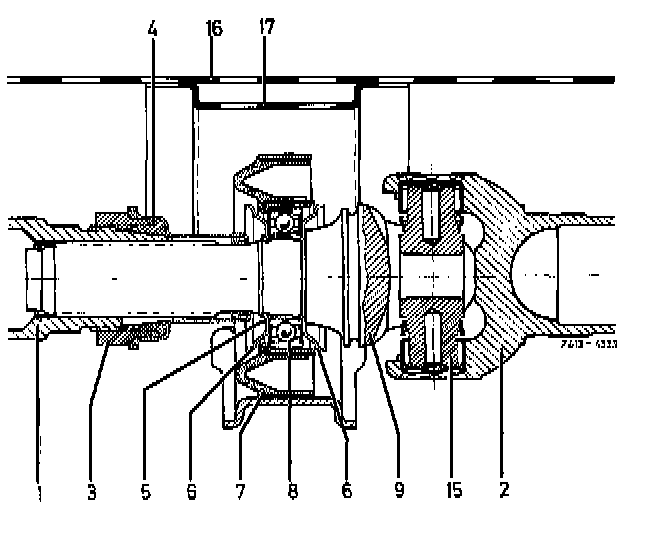 16 Insert locking ring (5) into groove of yoke in such a manner that cap rests tightly against inner bearing race.