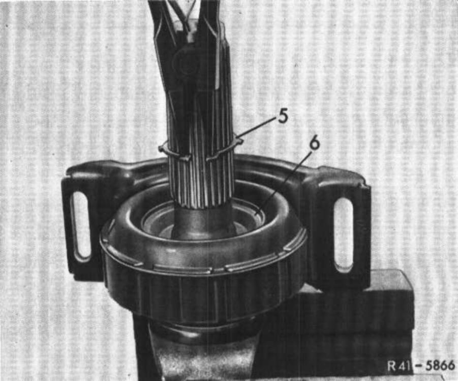 5 On vehicles up to July 1982, remove locking ring (5) from groove and take off together with front protective cap (6).