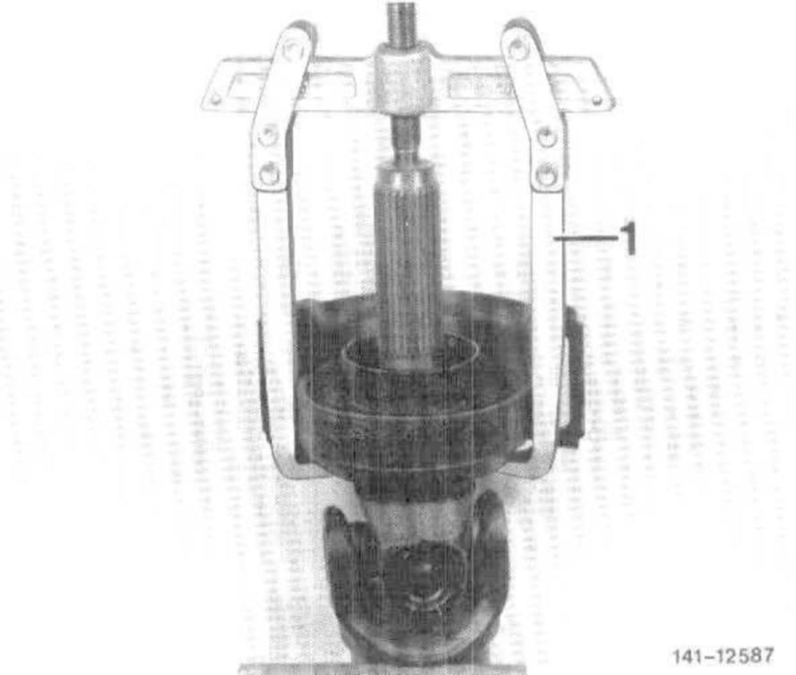 7 On vehicles up to July 1982, pull rubber mount and radial ball bearing together from yoke by means of two-arm puller (1).