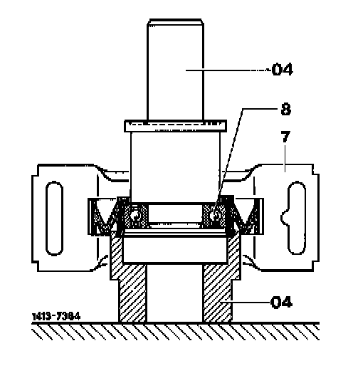 10 Press radial ball bearing (8) out of rubber mount (7) with remover and installer (04).