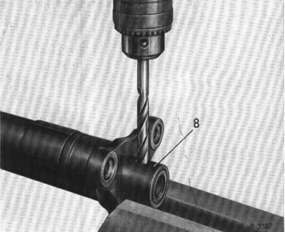 6 Drill a hole of approx. 10 mm dia. at right angles through sleeve approx. 15 mm from face of centering sleeve.