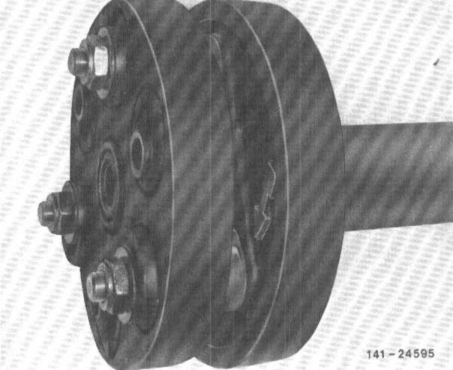 4 Mark companion plate in relation to three-arm flange of propeller shaft and remove.