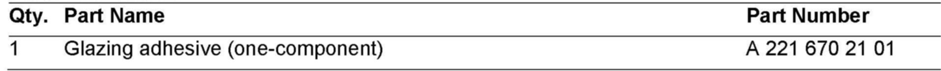 Since January 2004, all MB plants use a higher grade adhesive to bond windows. To match the quality of this adhesive, the glazing repair kits for replacing windows have been improved. It is no longer a two-component item and is without the booster component.